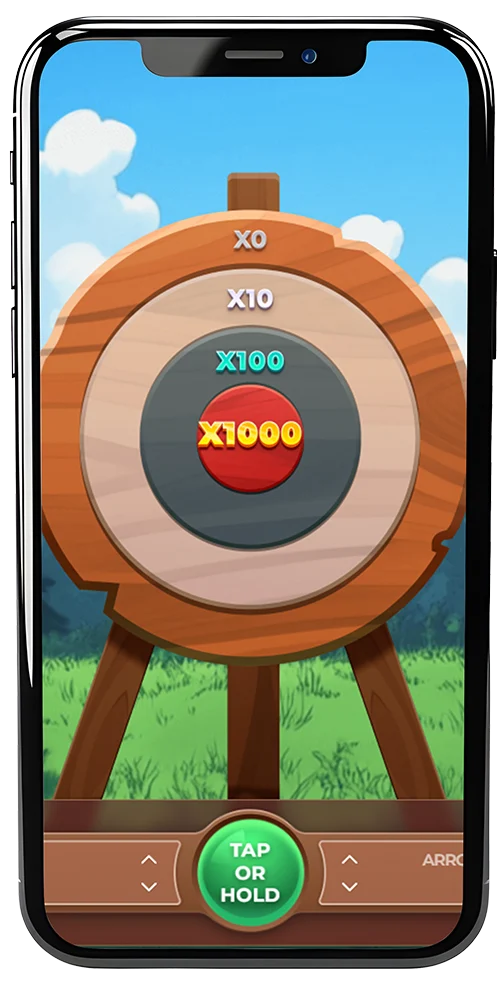 Nella modalità demo puoi passare liberamente tra Facile, Medio e Difficile. Puoi scoccare da una singola freccia fino a 100 frecce in una raffica. Tutte le meccaniche — incluso il Moltiplicatore Intelligente che premia la precisione costante — funzionano esattamente come nella versione con denaro reale.